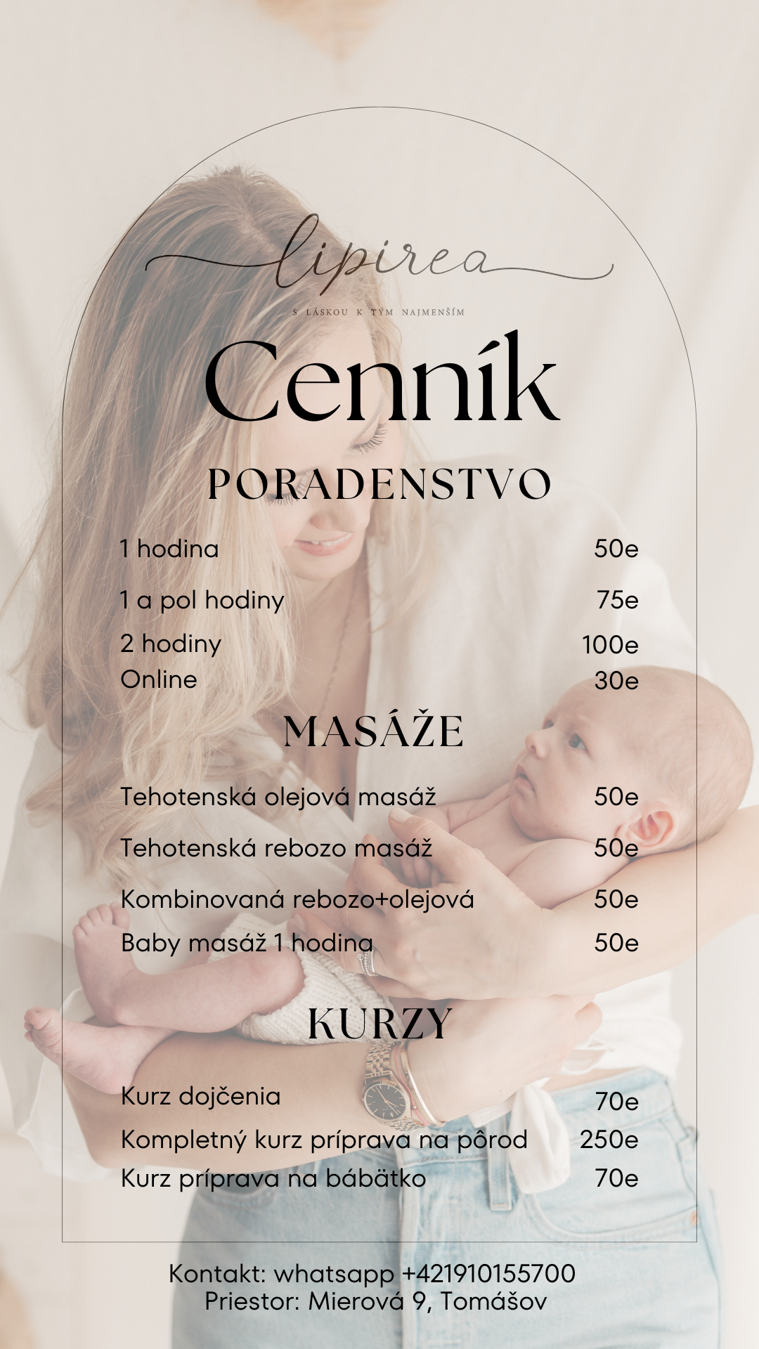 - konzultácia so mnou v akomkoľvek smere v rozsahu mojej odbornosti - pôrodná asistentka/laktačná konzultantka/inštruktorka masáže dojčiat